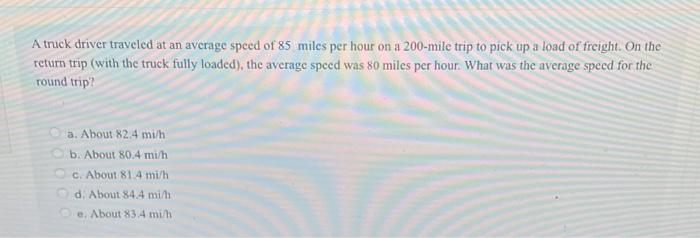 Solved A Truck Driver Traveled At An Average Speed Of 85 Chegg Com